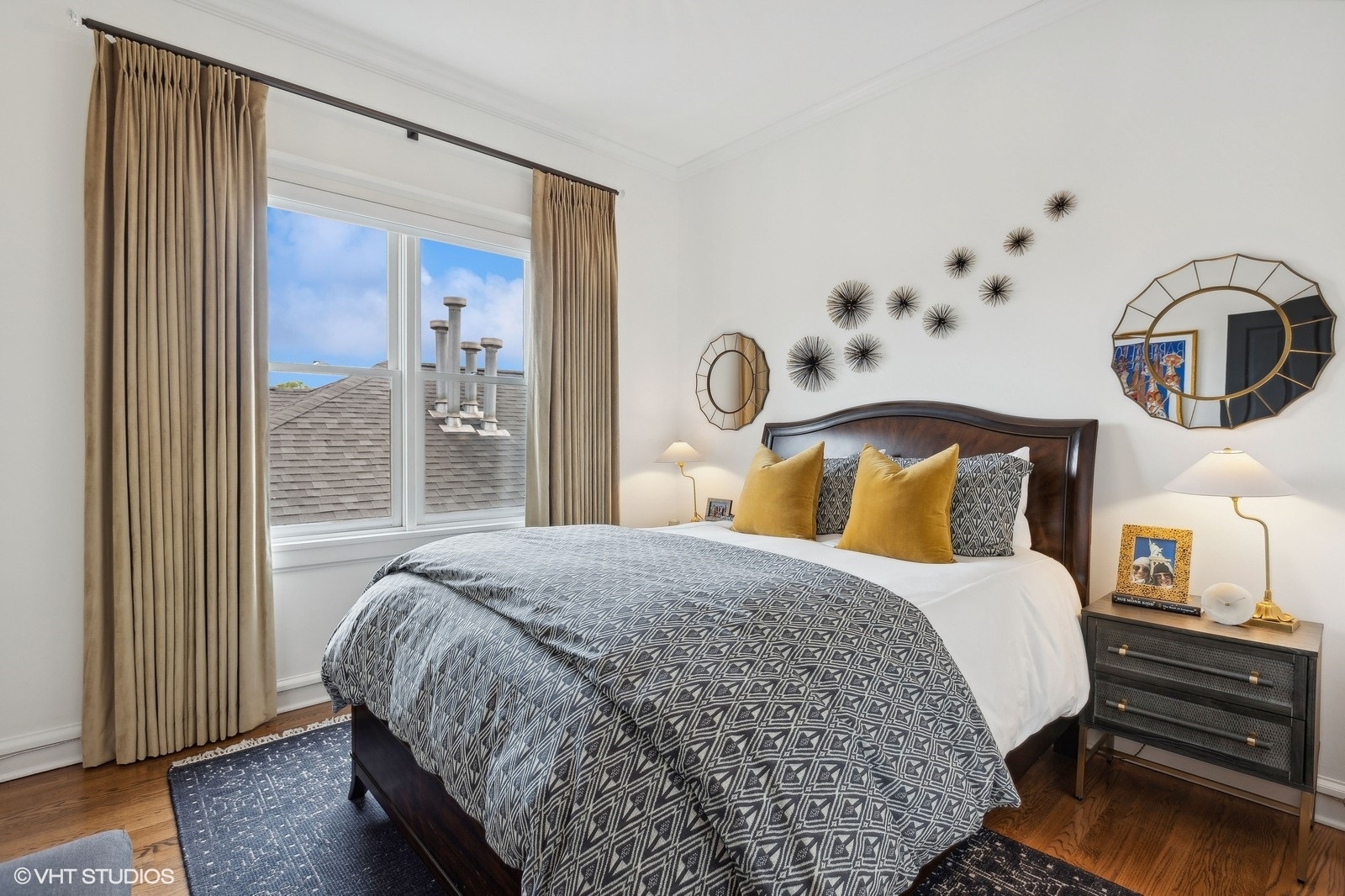 Truly a one-of-a-kind home that you don't want to miss out on! This stunning penthouse simplex unit is located on the highly coveted Burling street in East Lakeview. Enter into the grand foyer and appreciate the elegance of this 3bed/2.1bath home. Immaculate details can be found throughout from new trim, wainscoting and wood-like painted beams, to custom shades, draperies, hardware and designer chandeliers. The king size primary suite features a walk-in closet and fully remodeled primary bathroom including a clawfoot soaking tub, walk-in shower, double vanity and marble tiling. The great room includes a chef's kitchen with Sub Zero and Viking appliances, Carrera marble backsplash, quartz countertops and walk-in pantry. Also included in the great room is the custom banquette for dining, family room with a marble surround fireplace and access to the large deck perfect for enjoying summer days and evenings. Venture over to the other side of the condo for a drink and lounging in the formal living room with a stylish wet bar, cozy marble surround fireplace and front balcony overlooking Burling. Even the laundry room is luxurious--new machines coupled with custom cabinetry and wallpaper. No detail has been overlooked! Attached garage parking and storage included. Easy access to the lake, parks and shopping and dining in Lakeview and Lincoln Park and only 3 blocks from the purple/red/brown line Diversey stop.